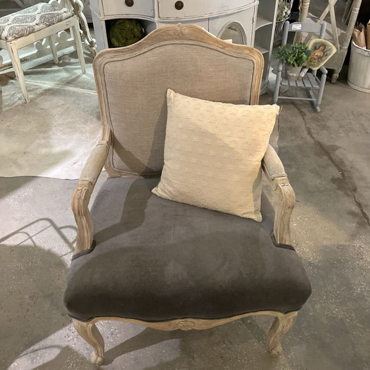 French Country Velvet and Linen Armchair