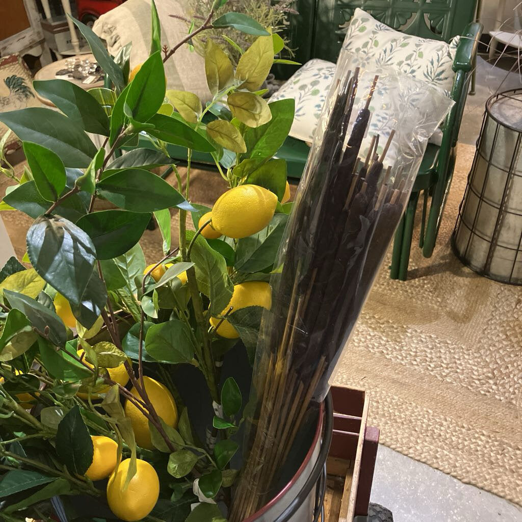 Dried cattail bunclde from India, measuring approximately 28" long, perfect for creating natural bouquets and make a great natural accent for any style.