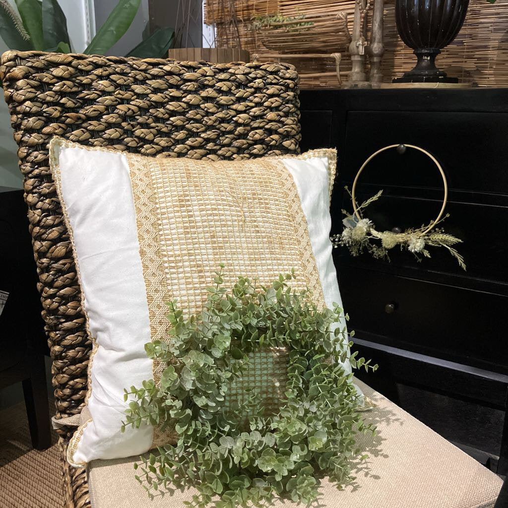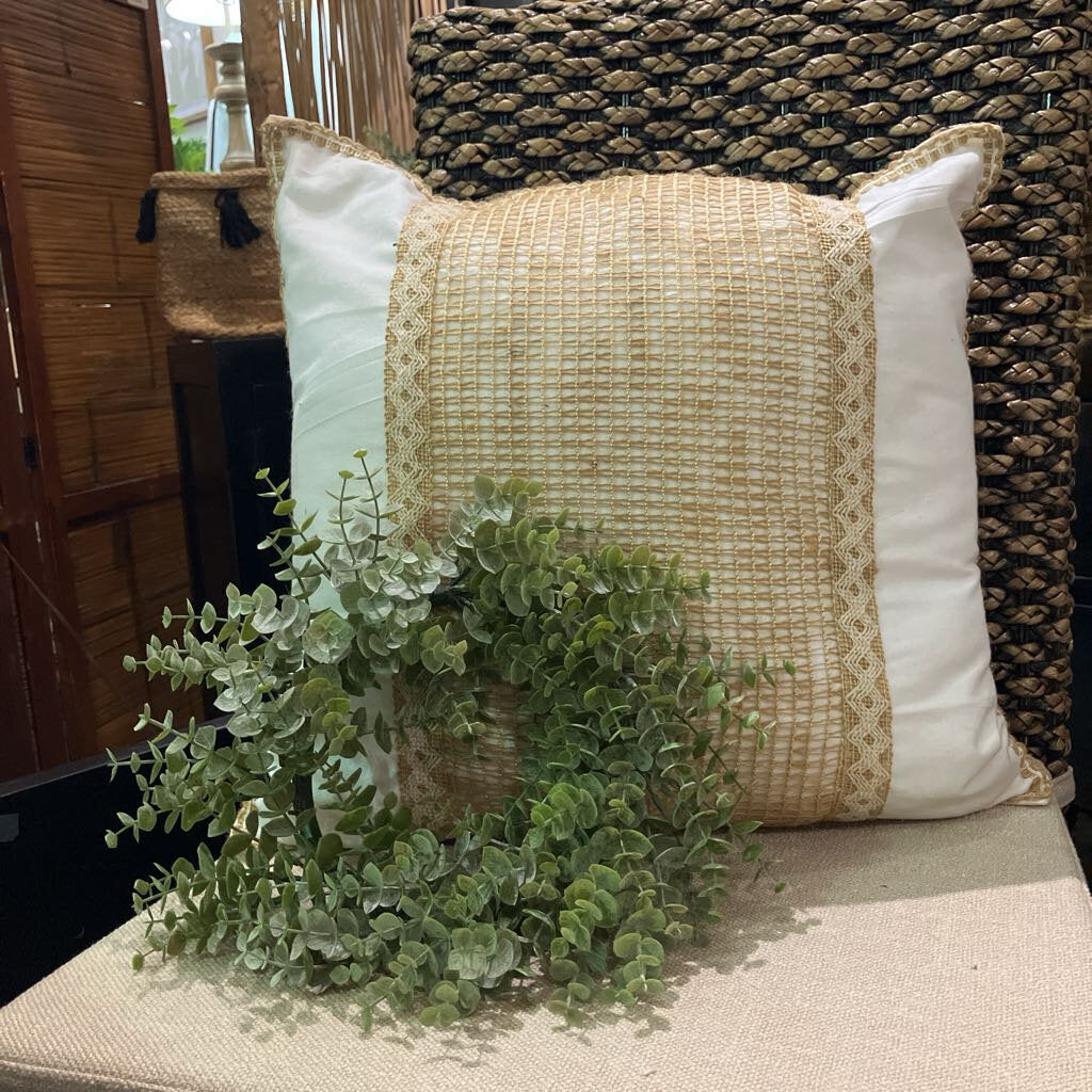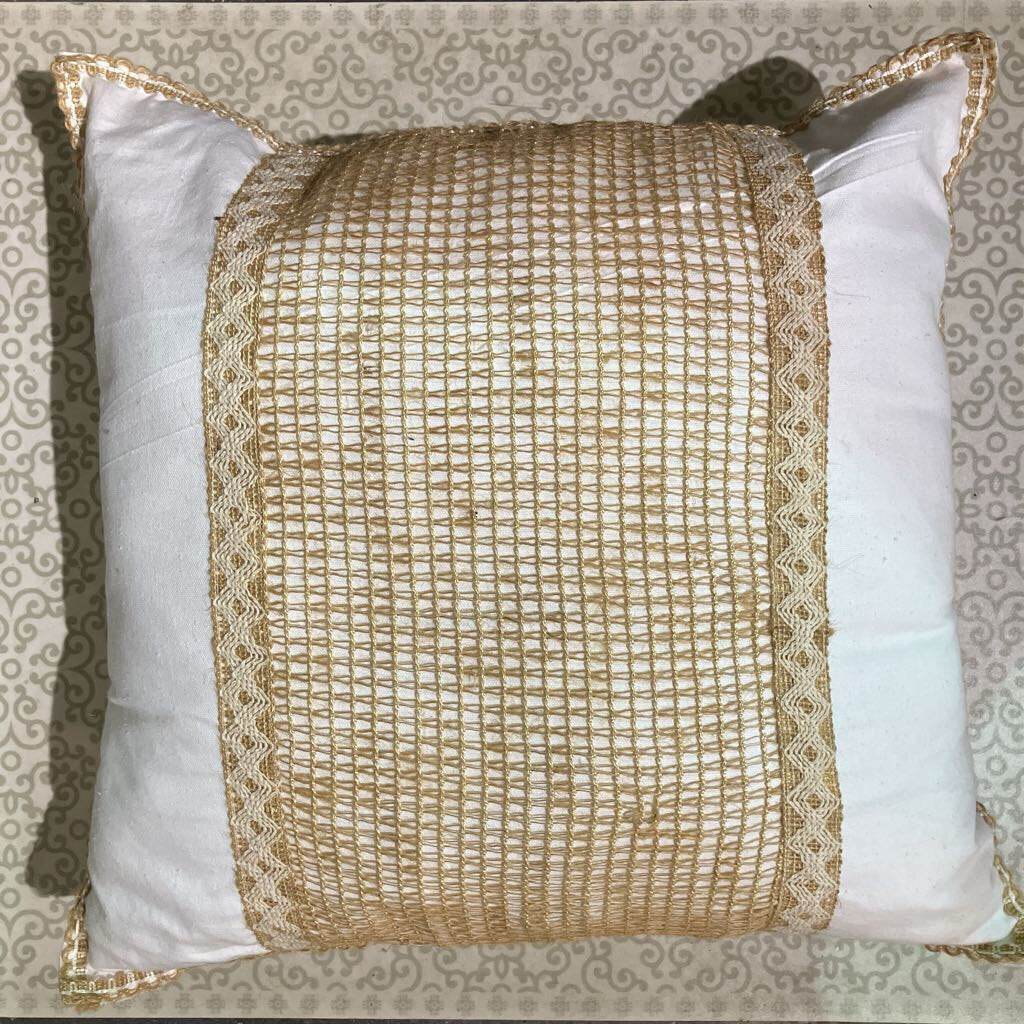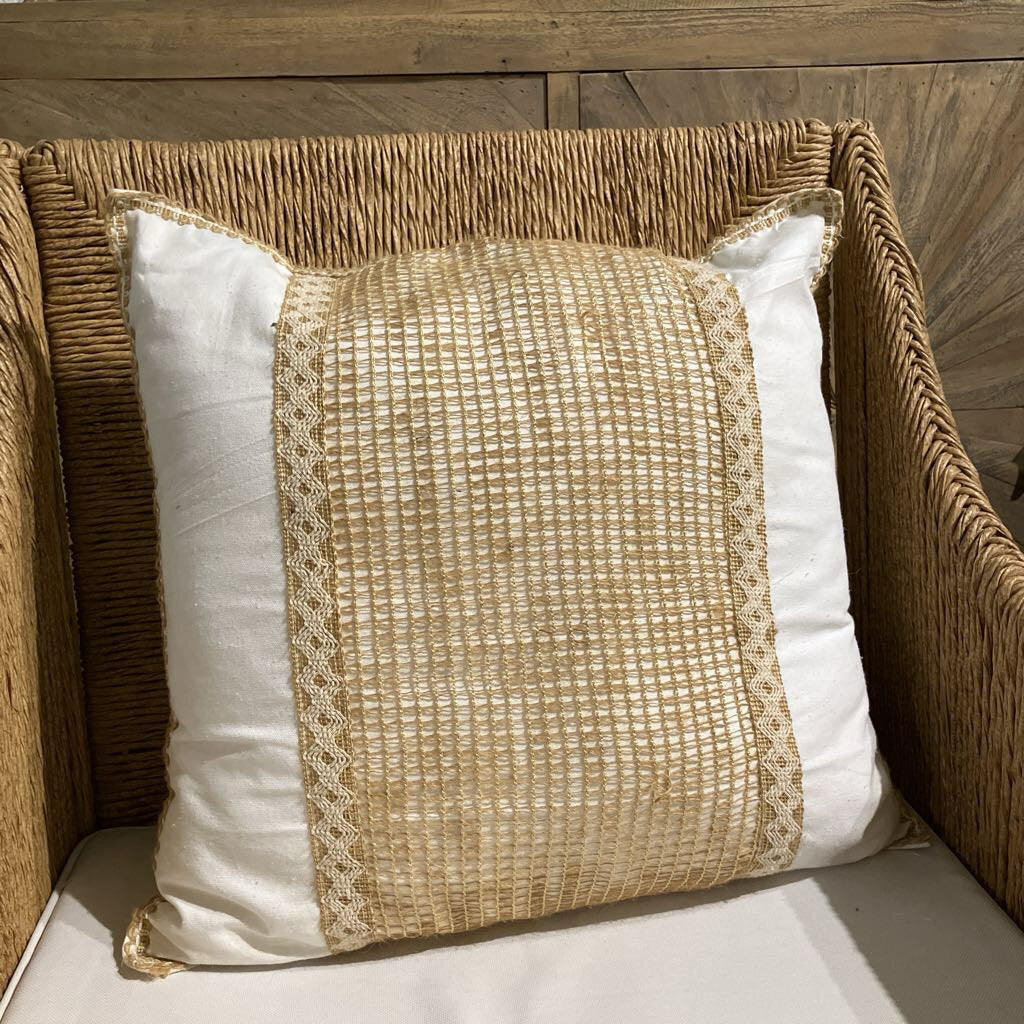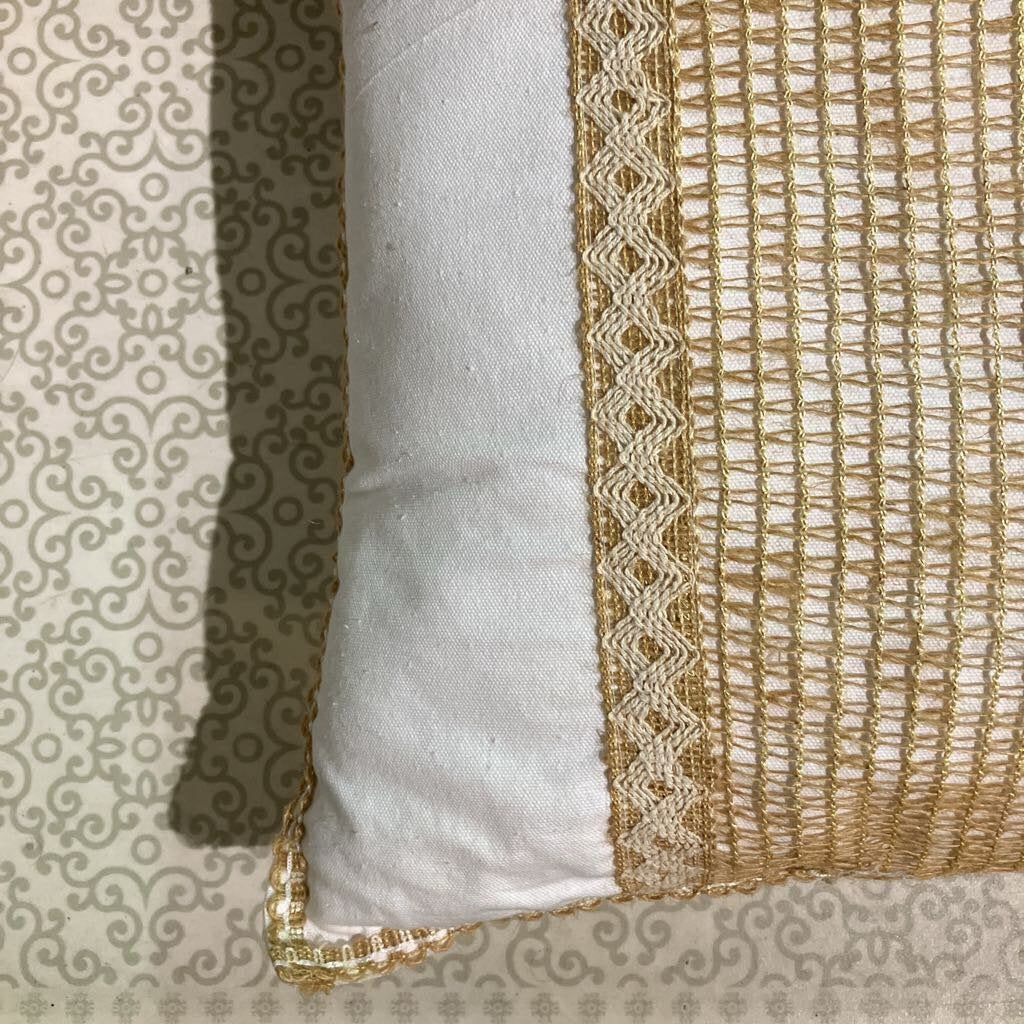 A one-of-a-kind textile pillow, handcrafted in India using all-natural cotton and featuring intricate weaving. It measures 20" X 20" for the perfect fit on your bed or couch.