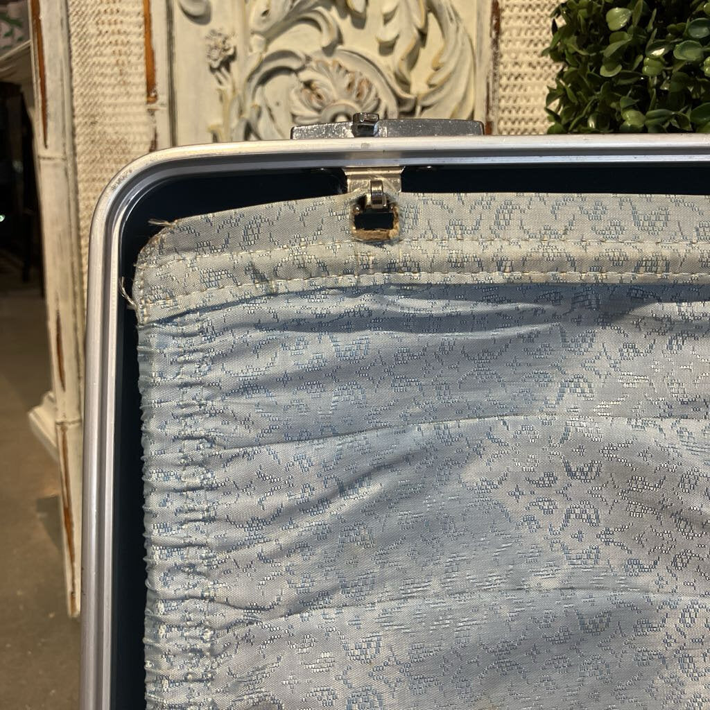 This Sears Forecast suitcase captures the essence of the 1970's with its attractive blue color and silver hardware. Perfect for the modern traveler who still wants a touch of nostalgia. In good condition, with some minor scratches on the outside and slight stains on the interior (please refer to images for more details). Measures 13" tall, 16" wide, and 5" deep.
