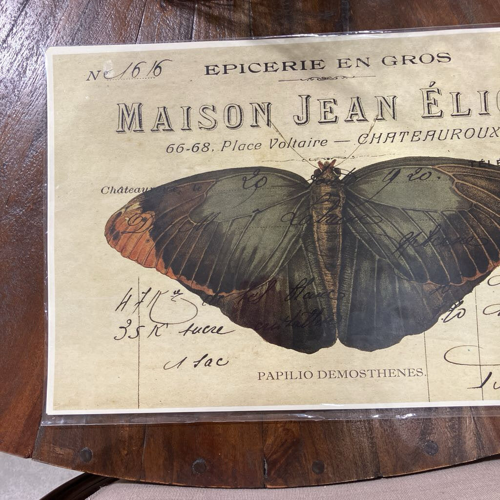 Vintage ephemera inspired paper placemats in a set of 12 each. Measures 17" X 11.5. Decorate your table for your next party with this adorable set. Please choose between the butterfly or mushroom design.
